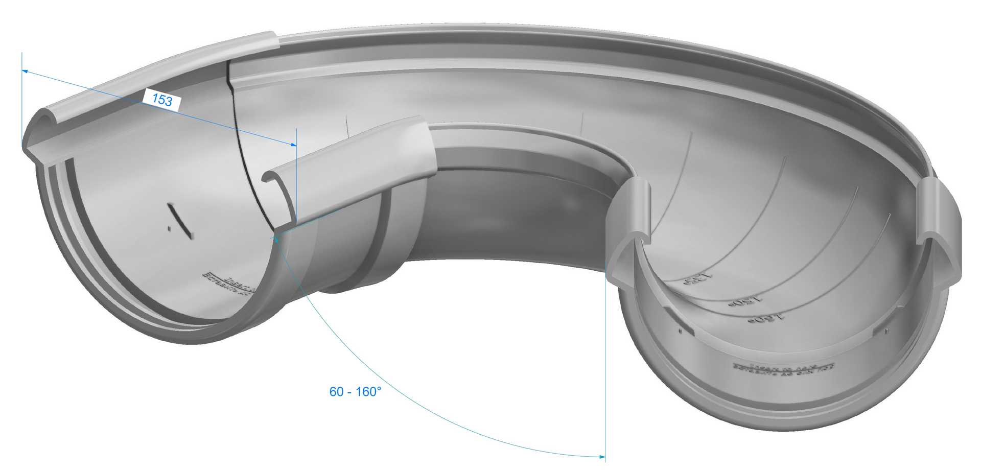 Предназначен для соединения различных водосточных труб с диаметром до 100 мм включительно под произвольными углами.