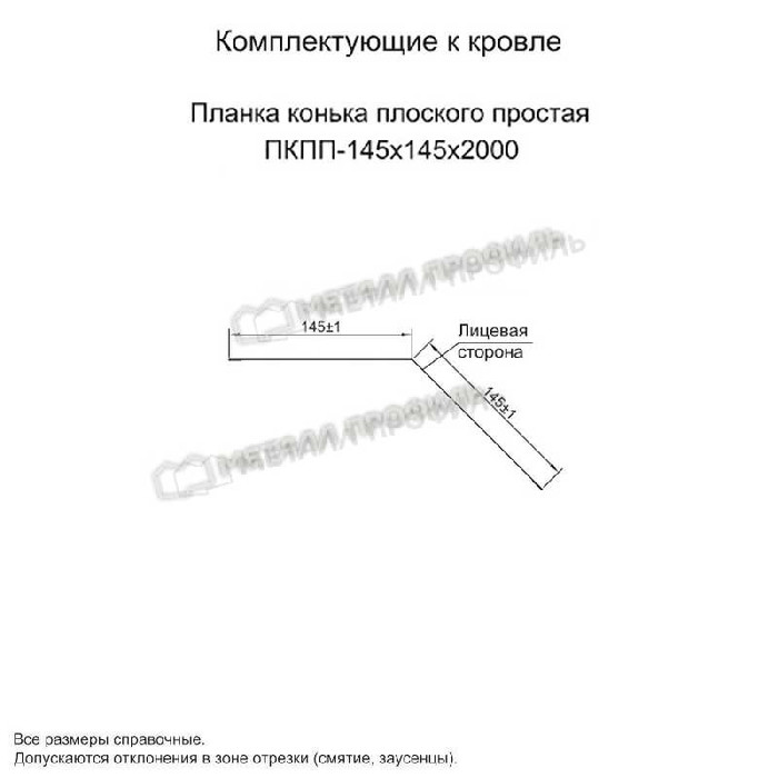 Планка конька плоского простая 145х145х2000 (ПЭ-01-1018-0.45) Показать информацию